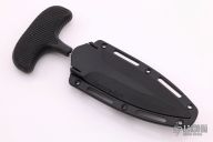 This Safe Maker I push dagger from Cold Steel has a satin finished chisel ground spear point blade with hollow ground backside and fuller on the front. Handle is non-slip. Excellent condition. Comes with a Secure-EX sheath with belt clip.