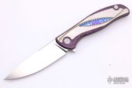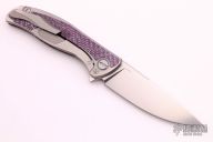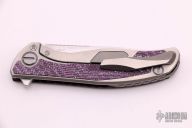 This knife is a collaboration between Shirogorov and Chris Reeve Knives, it features a tumbled blade with satin finished flats, notched thumbrest and flipper. The handle has purple twill front scale with a titanium overlay with a unique graphic, titanium lockside with purple twill inlay, tip up titanium clip with hidden screws, titanium backspacer. Comes with original box and papers. Excellent Condition.