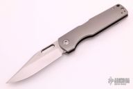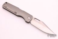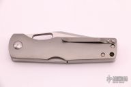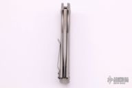 This Specialist lockback by Jim Burke features a hand rub satin finished blade with thumbhole. The handle has a blasted titanium frame with tip up titanium clip, orange peel finished titanium backspacer, matte finished stainless steel lockbar. Has a couple very light scratches, otherwise excellent condition.