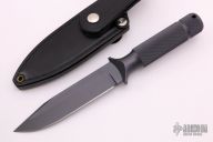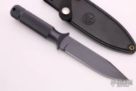 This Mark VI by Chris Reeve was designed to incorporate the two basic criteria required in knives destined for hard field usage, these clip-points have plenty of blade weight and good strong points. This design has been used by soldiers all over the world who have found them to be extremely good weapons as well as rugged dependable tools. The 5.5” bladed Mark VI is a good everyday carry knife and the pancake sheath rides high and snug. 10.375" overall. Excellent condition. Comes with original black leather sheath.