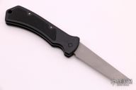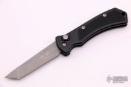 This Side-opening coil spring automatic by Paragon features a bead blast chisel ground tanto blade. Black aluminum frame with rubber inlays. Includes a back nylon sheath. Excellent Condition.