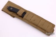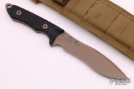 The Ronin Shinto by Spartan Blades features a tungsten PVD coated re-curved blade with a false top edge and a full tang construction. .187" Blade Stock 1.148" Blade Depth. The handle is composed of black canvas micarta. Includes original nylon sheath. Excellent condition.