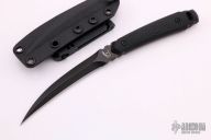 During World War II, operatives of secret units like the British SOE (Special Operations Executive) and American OSS (Office of Strategic Services) armed themselves with a wide variety of clandestine edged weapons. Some, like thumb and lapel daggers, are relatively well known, but one of the most unique was the “Tine Dagger.” Originally fashioned from the tines of pitchforks, they often had cord-wrapped handles and a series of thumb notches for a more secure grip. Intended purely for thrusting tactics, tine daggers were last-ditch, extreme-close-quarters weapons.Designed by Master Bladesmith Jason Knight, the Knight Elements Voodoo honors the spirit of the original tine dagger, while expressing it with state-of-the-art materials and style. Precision machined from N690 stainless steel, its blade features dagger-style twin bevels on one side and a hollow fuller on the other. This creates a needle-sharp point and a sturdy triangular cross section that ensure deep penetration. To ensure a non-slip grip, its full tang includes strategically located grooves and is flanked by G-10 or canvas Micarta® scales with a CNC-machined high-traction texture pattern. Every Voodoo dagger also comes complete with a custom-molded, snap-fit Kydex® sheath and a quick-release belt clip. Like classic tine daggers, the Voodoo is purpose-designed as a thrusting weapon. The subtle curve of its profile naturally complements the arc of motion of the human arm, placing the point on line with the hand to penetrate with maximum power. When employed with the tactics for which it was designed, it easily transcends the deadly efficiency of the old-school daggers that inspired it. It is also an extremely unique collector’s piece or letter opener for military historians and edged-weapon enthusiasts.
