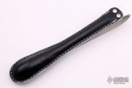 Since 2003 D3, Protection has been a maker of hand made high quality leather goods including saps & blackjacks, and impact weapons. Ranging from keychain saps and coffin flat saps to aluminum batons. Every item is made by David Doerr, in western Canada. Using only the finest leather and hardware available. These leather pieces are made of excellent quality materials and craftsmanship."D3 Protections flat saps, Finger saps and blackjacks are all made of the highest quality American made leather tanned by Herman Oak and are built for many years of loyal service. Flat saps consist of a flat spring with a lead ingot cast to it, this is known as the "frame". The frame is then covered with multiple layers of thick leather and sewn through all the layers. D3 Protections blackjacks are all made around custom made frames cast by me. The frame is then wrapped with various types and thicknesses of leather." These are some fantastic paper weights! Shown here is a 10" D3 Protection Denver made from 3 layers of Black leather. The strap is a tapered 4 oz black leather lined with glazed pig skin and with the conventional rivets, Total weight of 12 oz for 3 layer sap. New from maker.