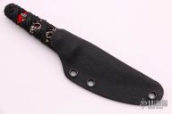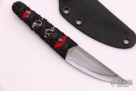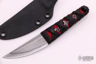 This knife by Ecos Knives features an upswept blade with nice hamon, .089" Blade stock and .870" Blade Depth, hidden tang construction. The handle is stingray skin under black cord wrap. Includes kydex sheath. Excellent condition.
