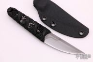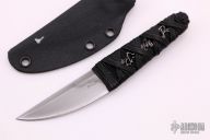 This knife by Ecos Knives features an upswept blade with nice hamon, .080" Blade stock and .870" Blade Depth, hidden tang construction. The handle is black cord under black cord wrap. Includes kydex sheath. Excellent condition.