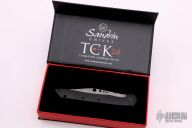 The 2.0 is an evolution of our original TCK, a proof of concept knife that the industry thought was not possible. The new TCK 2.0 features a quality slip joint action and stainless handles finished in a black vapor deposition accented with a red liner for a touch of style. The blade is mirror polished and finished in a black Diamond-Like-Carbon finish. The two-handed opening mechanism is aided in the Fibonacci inspired holes in the blade.