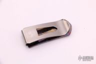 This Money clip by William Henry Fine Knives features a Chad Nichols mokuti frame with carbon fiber inlay and a white topaz set in a gold bezel. Comes with original box and papers. Excellent condition.