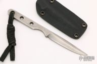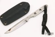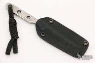 This neck knife by Burchtree Bladeworks features a hand rub satin finished blade with nice hamon, .156" blade stock and .482" blade depth, full tang construction. Comes with a kydex sheath. Has some scratches and some rust on the blade, fair/poor condition.