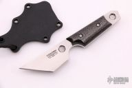 This Tanto Dashi by Sam Eddleman has a mirror polished chisel ground tanto blade with hole and notched thumb rest. .142" blade stock, .988" depth. The handle has carbon fiber scales. Has a few light scratches, otherwise excellent condition. Comes with kydex sheath.