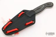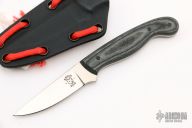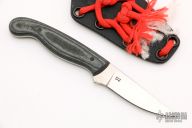 This Knife by Tom Krein features a satin finished blade with .102" blade stock and .642" blade depth, full tang construction. The handle has black/grey G-10 scales. Includes a kydex neck sheath. Excellent condition. Dated 2010