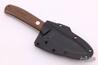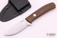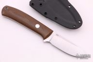 This knife from Dan Crotts features a satin finish drop point blade. .128" blade stock and .93" blade depth. The handle has micarta scales, aluminum pin and lanyard tube over full tang construction. Includes kydex sheath with belt loop set up for horizontal carry. New from maker.