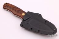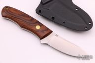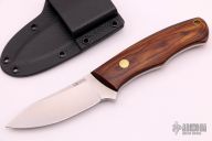 This Model 28 Semi-Skinner by Dan Crotts features a satin finished blade, .140" blade stock and 1.018" blade depth, full tang construction. The handle has cocobolo scales with brass pins and lanyard hole. Comes with a kydex sheath with horizontal carry.  New from maker.