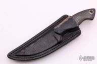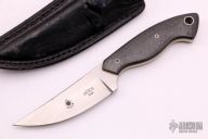 This Knife from Graham Knives features an upswept satin finish blade with fileworked thumbrest, .128" blade stock and .992" blade depth. The handle is comprised of carbon fiber scales with yellow liners and mosaic pins over full tang construction. Lanyard tube in pommel. Includes a black leather sheath. Has some wear on the sheath, otherwise excellent Condition.