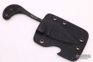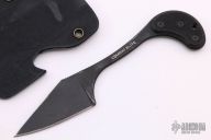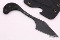 This push dagger by Combat Elite features a black clip point blade with notched thumbrest, .156" blade stock and 1.244" blade depth, full tang construction. The handle has black G-10 scales. Comes with a kydex pocket sheath. Has some wear, otherwise good condition.