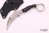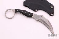 This TAD Edition Hangnail by Mark Terrell features a satin finished blade with false top edge, .189" blade stock and .948" blade depth, full tang construction. The handle has black G-10 scales. Comes with a kydex sheath. Has #1 on the blade. Excellent condition.