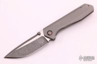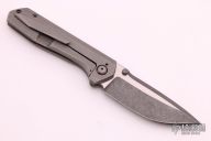 This Continuum by Tuff Knives, features a two-tone blade with a false top edge and dual thumbstuds. The handle has a tumbled titanium frame, kirinite pivot collars, tip up pocket clip with hidden screws. Excellent fit and finish. Dead center blade seating, smooth action and nice detent. Comes with zippered case and COA. Excellent condition.