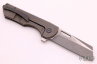 This Production Yeager by Brian Brown features a wharncliffe style blade with tumbled grinds and satin finished flats. The handle has a titanium frame with zirconium pivot collars, tip up clip and backspacer. Comes with a zippered case. Light scratches are visible on the pocket clip otherwise the knife is in Excellent condition.