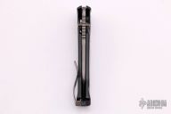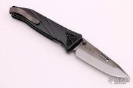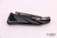 This CHI by Rockstead features a DLC coated tanto blade with a notched thumbrest and dual thumbstuds. The handle is black aluminum with rayskin inlay, tip up black stainless steel clip and a single stainless steel liner. Comes with original box. S/N L337. Excellent Condition.
