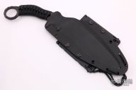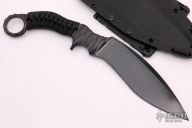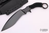 This Furiosa is a collaboration by Marfione Custom Knives and Borka Blades, it features a kukri style blade with tumbled DLC finish and Borka Patterned handle, .388" blade stock and 1.922" blade depth. The handle is comprised of black paracord wrap, full tang construction. One inch karambit style finger hole on pommel. Includes kydex sheath. #003. Excellent condition. Comes with original box and COA