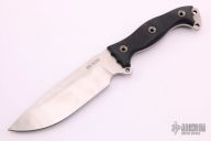 This Nano Fusion Natural Outlaw features a satin finished drop point blade with .224" blade stock and 1.791" blade depth, full tang construction. The blade material is the famous INFI. The handle has black G-10 scales with a lanyard hole at the butt.  Excellent Condition.