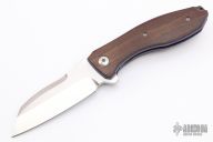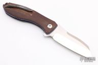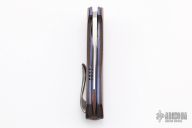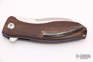 This Collaboration piece by Jim Burke and Jeremy Marsh features hand rub satin finished blade with flipper. The handle features brown canvas micarta scales over an anodized titanium frame with a rustically finished anodized titanium tip up pocket clip.  Canvas micarta backspacer.  Includes a padded zippered case.  Nice action, detent and lock up.  Excellent Condition.
