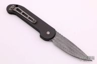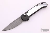 This One Off LUDT by Marfione Custom Knives has a hand-ground Rados Turkish Damascus blade with notched thumbrest. The handle has a black aluminum frame with a mother of pearl inlay and a tip up satin finished stainless steel clip, lanyard hole at the butt. Comes with a nylon zippered case. One of a kind. Excellent condition.