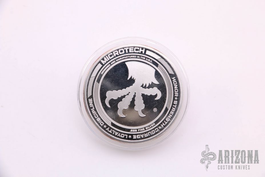 This challenge coin from Microtech Knives features a claw logo. .999 fine silver. Dated 2019. Excellent condition.