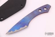 This Model 6 by Warren Thomas features a laminated titanium and red G-10 blade with carbide edge, .250" blade stock, 1.104" blade depth. Fingerprint anodizing on titanium. Includes kydex sheath. Nice work. Has some light scratches, otherwise excellent condition.