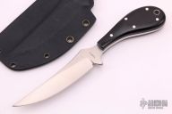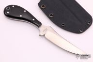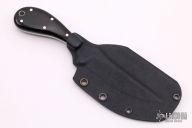 This push dagger by Mickey Yurco has black G-10 scales. Full tang construction with 3/16" blade thickness and 1" blade depth. Includes black kydex sheath. #2902. Excellent condition.