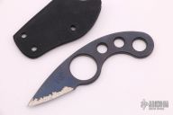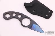 This La Griffe is "Fingerprint" anodized titanium with a chisel ground blade with a carbide edge, .189" thickness and 1" blade depth, 1" diameter finger hole. Nice fit in the hand. Excellent condition. Comes with kydex neck sheath.