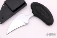 This discontinued Kuma Zume by Benchmade features a stonewashed hawkbill blade, .188" blade stock and 1.466" blade depth, hidden tang construction with rubber handle. Comes with black plastic sheath. Excellent condition.