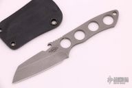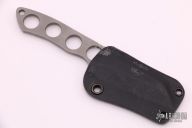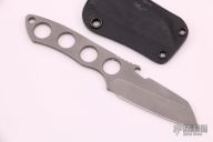 This Firecracker neck knife by Peter/Kyle Carey features a tumble finished blade and handle, .154" blade stock and 1.139" blade depth. The spine of the blade has a bottle opener. Comes with a kydex neck sheath. Has some scuffs, otherwise excellent condition.
