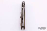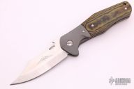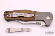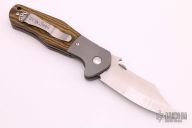 This Custom Apache Folder from Emerson features a hand ground satin finished blade with bead blast dove tailed titanium bolsters, brown Richlite scales, bead blast titanium liners, tip up stainless steel clip. Wave Feature and Thumb Disc. Nice detent, lockup and blade seating. Comes with original box. Originally from the 2019 USN Gathering. Has a few light scuffs, otherwise excellent condition.