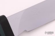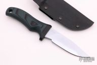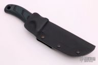 This Bug Bug by MadDog Knives has a hard chromed, double-edged blade with VVTL finish (very visible temper line) Razor sharp edges with a type 1 choil, the black and green handle material is the proprietary glass / epoxy composite -- compression bonded to the hidden full tang and incredibly ergonomic. .191" blade stock and 1.005" blade depth. Mad Dog trademark on the ricasso – it is the PERFECT knife for everyday carry. The knife comes with a high ride kydex belt sheath. Excellent condition.  Has a Rockwell C-scale hardness of 62 at the edge (as hard as a file), and HRC 50-54 throughout the spine and hidden full tang. The handle is designed to be ergonomic and has the ability to withstand tremendous punishment with little or no damage.  New From Maker!