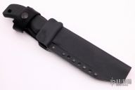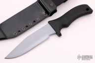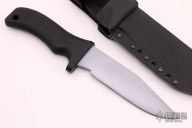 This Centurion by MadDog Knives features a clip point blade. .250" stock. 1.469" blade depth. Selectively tempered, the knife has a Rockwell C-scale hardness of 62 at the edge (as hard as a file), and HRC 50-54 throughout the spine and hidden full tang. Hard chrome blade finish. With "Mad Dog" on the blade. The black handle material is the proprietary glass / epoxy composite -- compression bonded to the hidden full tang and incredibly ergonomic. It is hard and tough enough to be used as an impact tool. Includes a ATAK Combat sheath. New from maker.