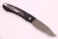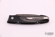 This E6-6 by William Henry features a black satin finished blade with single thumbstud. The handle has a black aluminum frame with carbon fiber inlays and tip up clip. Comes with original box and papers. Has some light scratches, otherwise excellent condition.