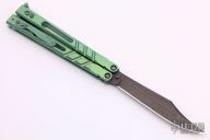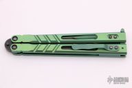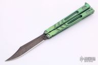 This Alpha Beast Balisong from Blade Runner Systems (BRS) features a tumble finished clip point blade. The handle is comprised of milled and anodized titanium with T latch on pommel. Excellent condition. Comes with original box and papers.