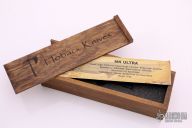 This MK Ultra flipper by Jake Hoback has a CPM-S35VN, upswept/tanto blade, notched thumb-rest and flipper. Caged bearing pivot. "Ps23 Hoback" on handle. Handle is comprised of DLC Black Fallout finished titanium scales with a titanium pocket clip positioned for tip up carry, left or right reversible. Included with this knife is a set of allen wrenches. Perfect detent, lockup, and blade seating. Knife flips well with absolutely no wrist action needed. Comes in a wooden presentation box with COA. Excellent condition.