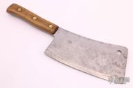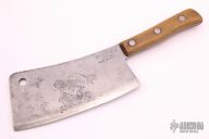 This Model 900 Cleaver by Briddell features a naturally patina'd blade with visible hamon, .234" blade stock and 4.298" blade depth, full tang construction with wood scales. Has some patina and light pitting, Has some hammer marks on the spine, but honestly, excellent condition for its age. Made in the 1950s-1960s.