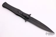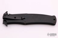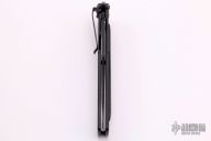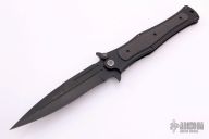 This assisted opening HTM (Hand Tech Made) Madd Maxx features a bayonet style black coated blade with the top edge only sharpened at point, and a black coated titanium frame with a 3D machined carbon fiber scale on one side. Black Stainless steel clip. Strong and fast opening. Perfect function. Has some scuffs, otherwise good condition.