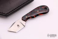 This Wee Tanto from Jonathan Graham features a satin finished blade with notched thumbrest, full tang construction, .137" blade stock and .869" blade depth. The scales are lava kirinite and are fastened using two mosaic pins. Comes in a custom black leather sheath with pocket clip. Excellent condition.