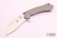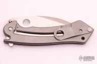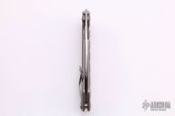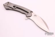 This knife by Steve Ryan features a satin finished recurve blade with thumbhole and flipper. The handle has a milled and blasted titanium frame and tip up clip. Nice detent, lockup and blade seating. Has a few light scratches, otherwise excellent condition.