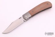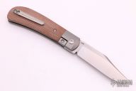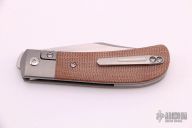 This Lanny's Clip Front Flipper by Enrique Pena features a satin finished blade with a front flipper and notched thumbrest. The handle has titanium bolsters, brown canvas micarta scales with a titanium backspacer and matching tip up pocket clip. Includes a Pena X-Series padded box. New From Maker!