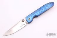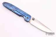 This Spire from Zero Knives features a hand rub satin finished blade with swedge, notched thumbrest and dual thumbstuds. The handle has timascus scales with a matching tip up clip and backspacer. Nice detent, lockup and blade seating. Comes with a zippered case. Excellent condition.