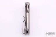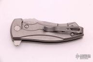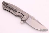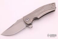This knife by Zero Tolerance is a collaboration with Les George. Features a tumble finished blade with notched thumbrest and flipper. The handle has a tumble finished titanium frame with an after market titanium tip up pocket clip, single black barrel spacer. Stainless steel lockbar insert and integral overtravel stop. #2543. Has been resharpened, very well, otherwise excellent condition. Comes with original box and papers.