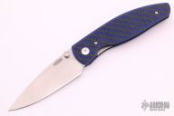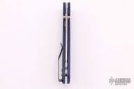 This Atom Linerlock by Three Rivers features a matte finished blade with dual thumbstuds. The handle has blue G-10 scales, titanium liners and tip up reversible clip. Nice detent, lockup and blade seating. Comes with original box, papers and a set of black linen micarta scales. Excellent condition.