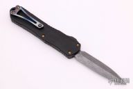 This Manticore-E by Heretic Knives features a double-edged hand ground Vegas Forge Damascus blade. The handle has a black aluminum grip with carbon fiber thumb slide, bronzed hardware and a tip down Entropic anodized titanium clip with ceramic ball. Comes with original box, zippered case and COA. S/N 016. Has some light scuffs and scratches, otherwise excellent condition.