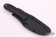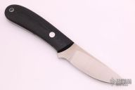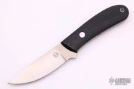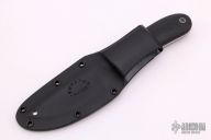 This K-5 King's River Skinner by Dozier Knives features a satin finished blade with .138" blade stock and 1.042" blade depth, full tang construction. The handle has black linen micarta scales with aluminum pins and lanyard hole. Comes with kydex sheath with belt clip. Excellent condition.