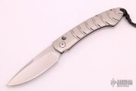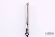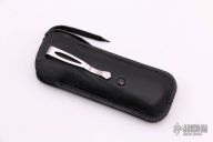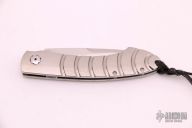 This B12 auto by William Henry features a laminated ZDP-189 core stainless blade with a hand rub satin finish. The handle has a polished and stippled aerospace grade titanium handle. Black lip pearl inlaid button. Comes with original box, sheath and papers. COA dated June 12, 2006. Has a few very light scratches, otherwise excellent condition. RARE